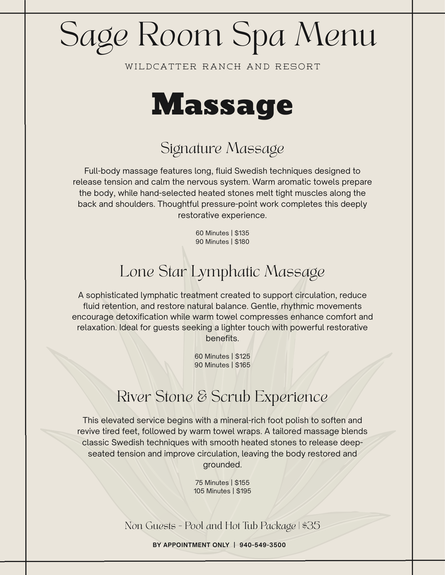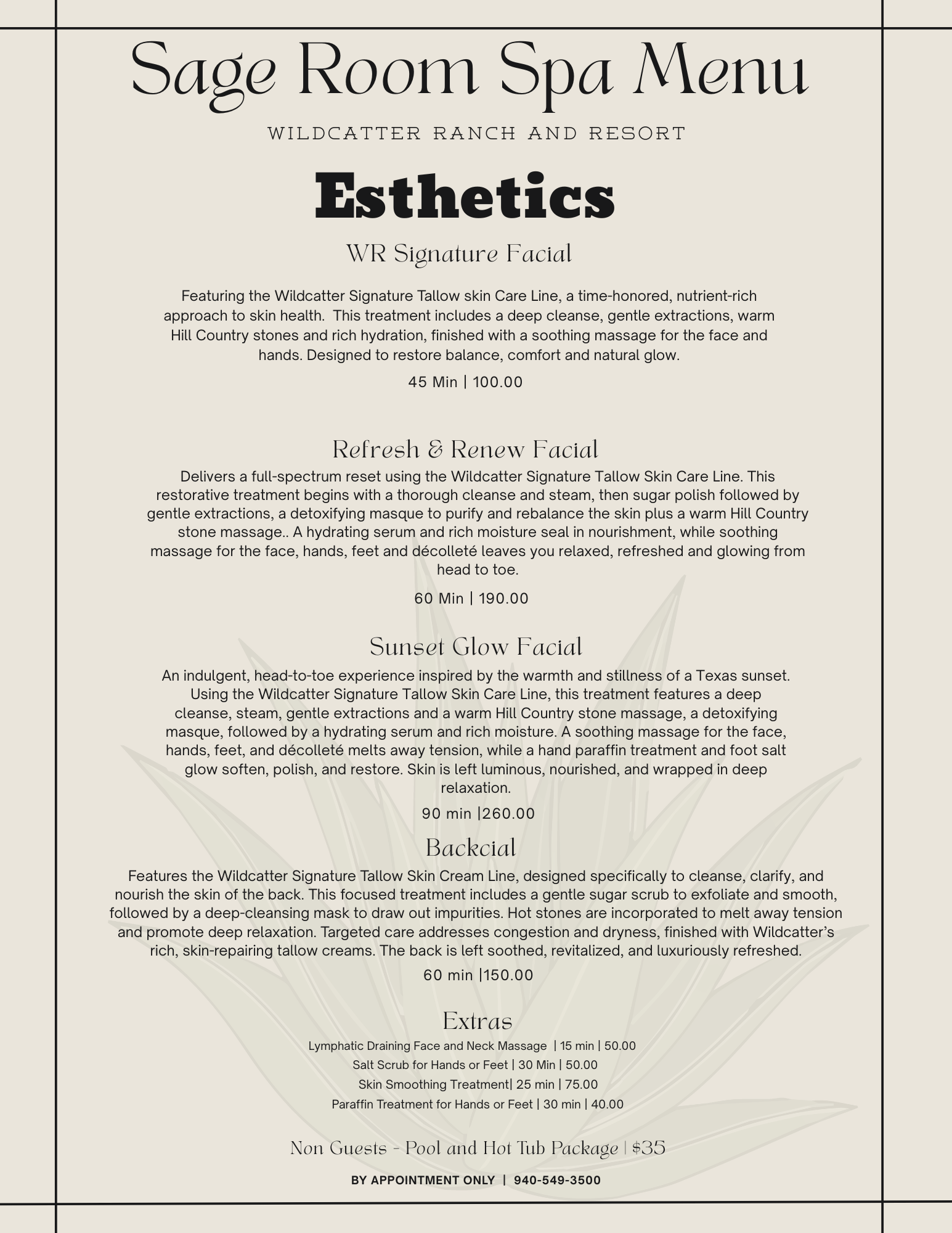 Wildcatter is set to open the Sage Room once again! Our spa will include facials and massage with our own custom line of signature tallow skincare made from a local specialists.